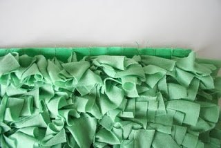 A párnahuzatot 2 cm-ként bevonalazzuk, majd az összes vonalra rávarrjuk a jersey anyagot ráncolva! Végül a párna 3 oldalát összevarrjuk a negyediken pedig betöltjük, majd kézzel ezt is összevarrjuk.
