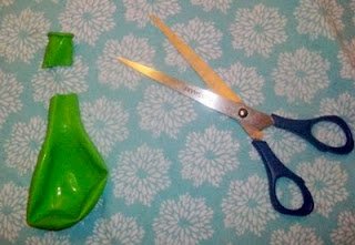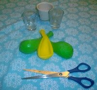 Levágjuk a lufi száját, ráhúzzuk a kupicára, a száját belenyomjunk a kupica belsejébe és kész is!