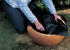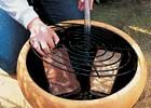 Elrendezzük a kavicsot, hogy takarjuk a rácsot. Ha nem stabil a korsónk helyezzünk abba is egy-két kavicsot, majd töltsük fel vízzel.