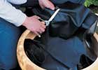 A műanyag rácsot helyezzük be és vezessük át rajta a tömlőt. Töltsük fel félig vízzel.