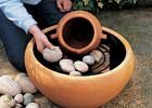 A korsó elé, mellé szintén helyezhetünk kavicsokat, hogy kellemesebb legyen a hatás, majd a csobogónk mögé növényeket ültetünk.