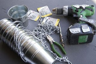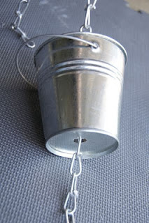 Fűzd fel a vödröket a láncra, majd a vödrök fogantyúira akasztott S-horgokat akaszd fel egy-egy láncszemre úgy, hogy a vödrök egyenlő távolságra legyenek.