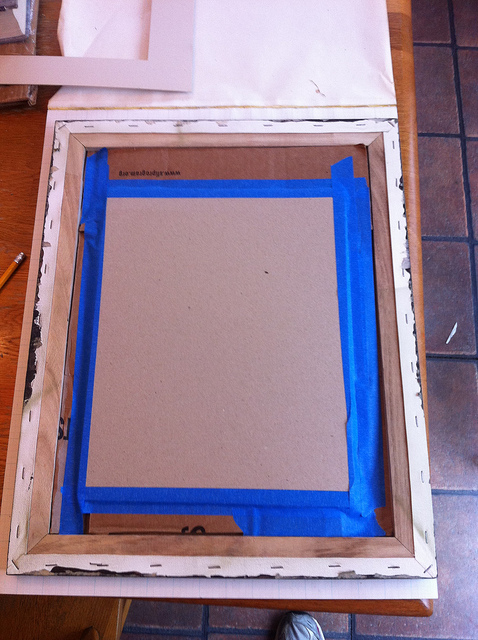 A festővászon hátuljára cellux-al vagy ragszalaggal ragaszd rá a kartonpapírt.