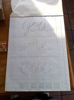 Fessük le a festővásznat a kívánt színre, majd szerkesszük meg a feliratot, ezt csinálhatjuk úgy, hogy felrajzoljuk egyből a vászonra vagy sablont használunk, akár word-ben kiválaszthatunk egy szimpatikus betűtípust és a megfelelő méretben kinyomtatjuk.