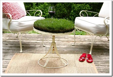 Ha nincs asztalkánk akkor a fűkanapéhoz hasonlóan építhetünk is, de ha egy műanyag asztal tetejét kifurkáljuk az is jó.