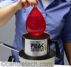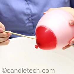 A paraffint egy kisebb edénybe melegítsük fel, majd mártsuk bele a lufit arra vigyázva, hogy a paraffin szintje ne lepje el a víz szintjét.