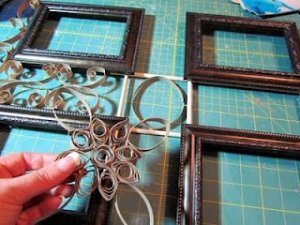 A képen látható módon a pálcikák és ragasztópisztoly segítségével csináljunk vázat a képkeretnek.