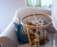 A függesztést is úgy oldjuk meg, hogy a legfelső karika négy pontján kössünk rá damilt vagy cérnát és ezeket kössük össze.