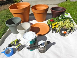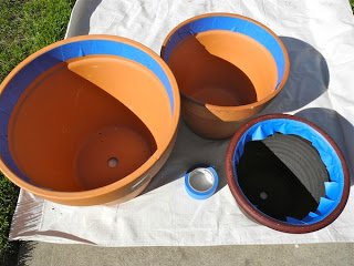 A cserepeket belülről kb. a tetejétől egy cm-re ragasszuk ki ragasztó szalaggal, hiszen a belsejét nem fogjuk lefesteni, mivel az árthat a virágoknak.