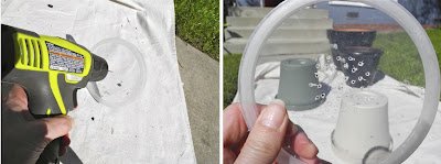 Helyezzük fel a cserepünkre és a ragasztó szalaggal rögzítsük oda, hogy nem csússzon el majd fessük ki fehérrel.