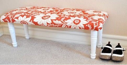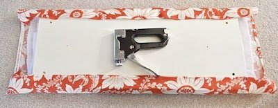 Helyezzük a textilre a szivacsot majd rá a bútorlapot és a tűzőgéppel tűzzük oda, figyelve arra, hogy a bútorlábaknak kifúrt lyukakat ne takarjuk el.