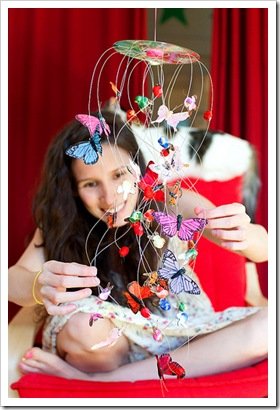 Kis színes lepkék, katicák, gyöngyök (akár netről kicsiben kinyomtatott lepkék is jók)