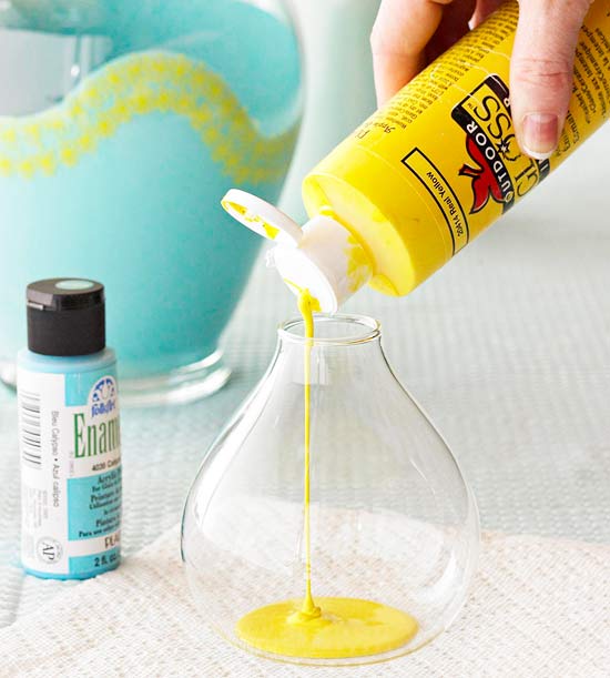 Öntsünk üvegfestéket a vázába.
