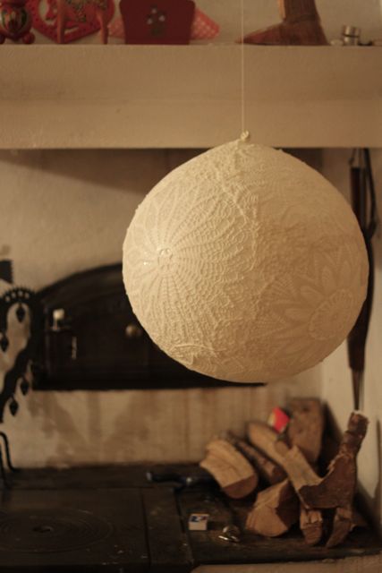 Ha kész pukkasszuk ki a lufit, ha jól dolgoztunk akkor a csipke megtartja a gömb formáját.