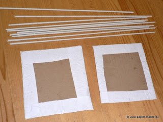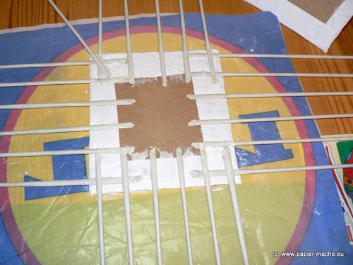 A leragasztott papírcsövek között oda-vissza tekerjük a szálakat.