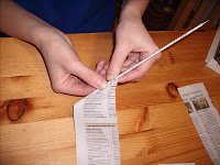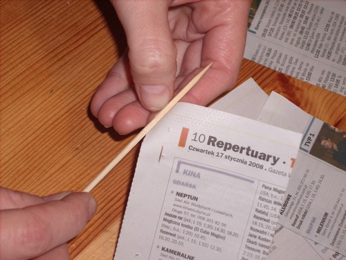 Várjuk, hogy megszáradjon, majd a hurkapálcát húzzuk ki a papírcsíkból.
