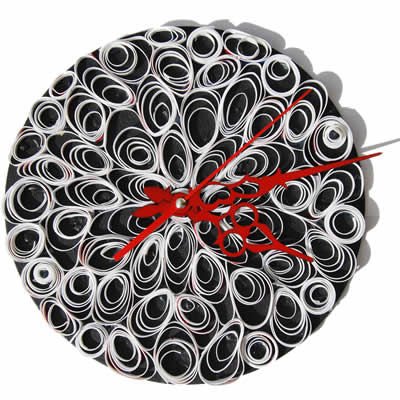Formázzunk szép ovális papírcsigákat és töltsük ki vele az egész óraalapot.