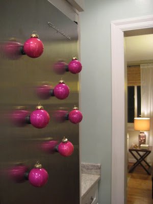 A mágnest felragasztjuk a gömbdíszre és kész is.