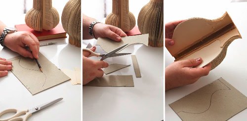 Kettőt szemből dugjunk össze, majd a képen látható módon ragasztópisztollyal ragasszuk fel a doboz kupakjára.