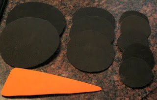 A fekete kartonból vágjunk ki 4 nagy, 6 közepes és 10 kicsi kört, majd ezeket egymással szembe forgatva ragasszuk össze.