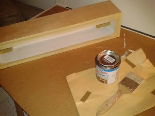 A polc széleit ragasszuk le, majd a belsejét fessük le fehérre.