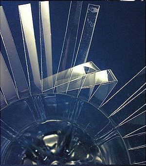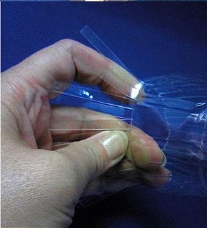 A flakonnak azt a részét, ahol a címke volt hosszában vágjuk fel kb. fél cm-es csíkokra.