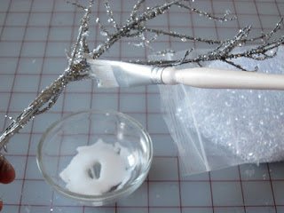 Szóval! Néhány helyen kenjük be az ágat decoupage ragasztóval.