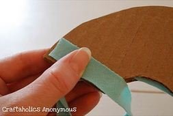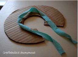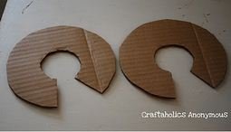 A kartonpapírból kettő kb. 30 cm átmérőjű lyukas karikát vágunk ki.