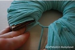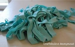 A pólókat felvágjuk kb. 1 cm-es csíkokra.