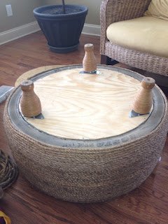 A kötelet tekerjük végig az abroncson és közben sűrűn ragasztózzuk.