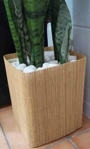 Nagyon egyszerű! Csak meg kell tisztítanunk a fém dobozt, majd köré ragasztani a bambusz edényalátétet, amit előtte méretre vágtunk, majd beültetni az így kapott szupi virágcserepünket, aminek tetejére fehér kavicsokat rakunk, hogy még dekoratívabban mutasson!