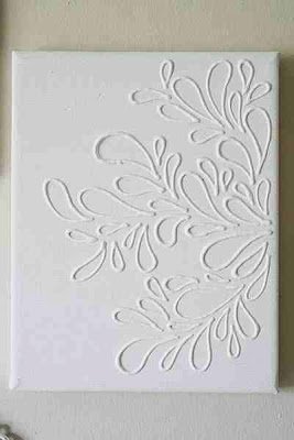 Ezen a képen például egy festővászonra rajzolták fel ragasztópisztollyal a mintát, majd az egészet fehérre festették!