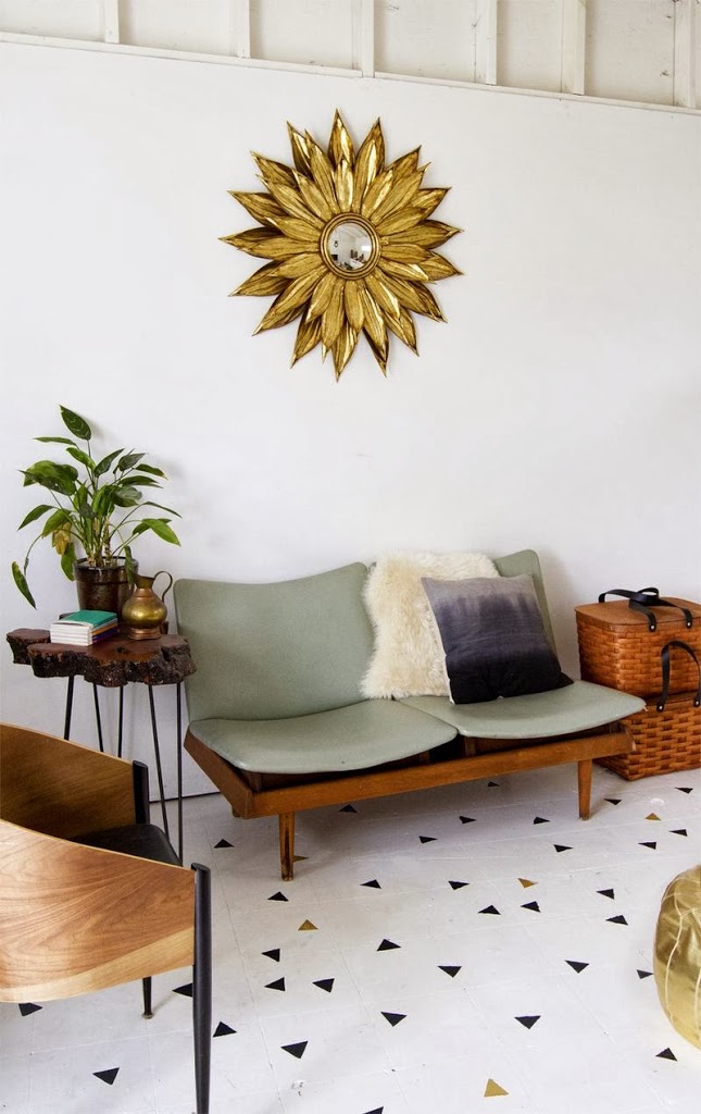 Az alkotó akryl és textil festéket kevert össze 2:1 arányban. Csak rá kell ragasztani a kívánt mintát és mehet is a festés, száradás után a ragasztót lehúzni és tádááám, kész a mintás szőnyeg. Nekünk is van egy beszürkült szőnyegünk.. 😉