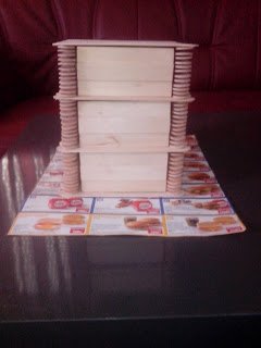 Összeragasztjuk a fiók darabjait! Az általam készített mérethez kettő-kettő spatula kellett az oldalnak, kettő a hátuljának és a elejét három spatulából ragasztottam össze!