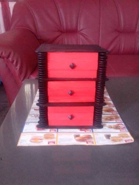 Én a keretet fekete spray festékkel festettem, míg a fiókokat ecsettel kentem!