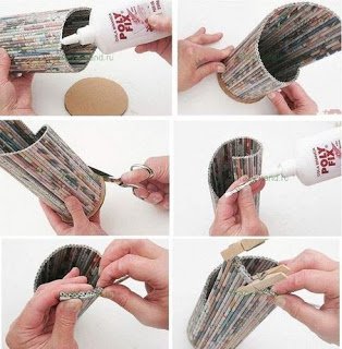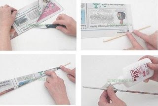 Az újságpapírokat egy hurkapálcán hengerekké tekerünk!