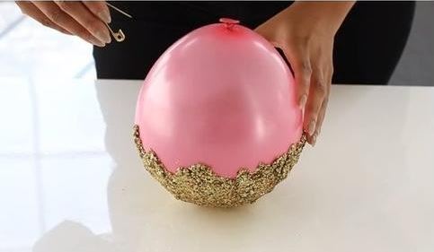 Ha megszáradt egy tűvel pukkasszuk ki a lufit és ha tényleg teljesen meg volt száradva a ragasztónk, akkor a lufi kipukkant és a dekortálunk egyben maradt.