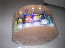 A flakonokat elrendezzük a kívánt formában és sokszor jó szorosan körberagasztjuk a ragasztószalaggal!