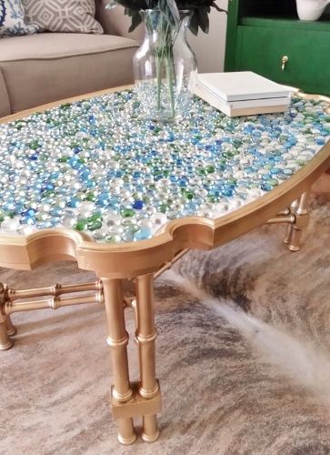 Vagy mozaikcsempével, üvegkavicsokkal! Üvegkavicsos bútorkát már készítettünk is itt a blogon!