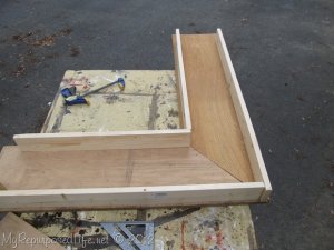 A két vastag deszkát szintén résutas fúrással fúrjuk (ragasztást követően) vagy vas sarokpántokkal rögzítsük azokat egymáshoz!
