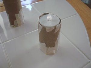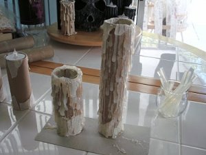 Hosszabb gyertyák készítéséhez több tekercset ragasszunk össze és, hogy a gyertyák stabilan álljanak készítsünk nekik alapot mondjuk parafából vagy kartonból!