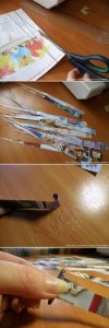 Képzeljük el, hogy mekkora gyöngyöket szeretnénk készíteni és az újságpapírt ennek megfelelően a képen látható módon rajzoljuk be a kivágandó papírcsíkokat!