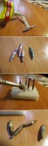 Gombostűvel beleszurkáljuk egy szivacsdarabba, majd zománc vagy akrilfestékkel festjük őket!