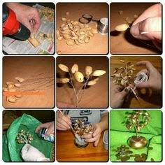 Az első ötletben pisztácia héjből és drótból gyönyörű díszfát alkotunk!