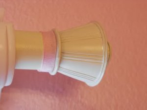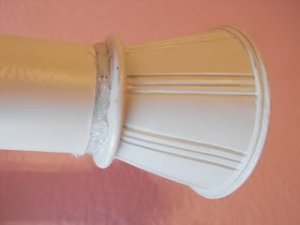 A bútorfogantyút és a pvc rúdat fessük le a kívánt színre, majd száradás után ragasszuk ragasztópisztollyal a bútorlábat a pvc csőhöz!