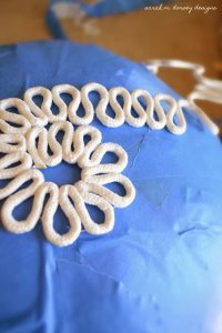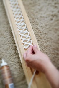 A zsinórt áztassuk be az erős ragasztóba esetleg háztartási keményítőbe és a sablon segítségével hajtogassuk meg!