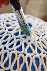 A starndlabdát kb. feléig vonjuk be a kétoldalas ragasztószalaggal és miután a zsinórunk teljesen megszáradt tekerjük fel körkörösen a labdára!