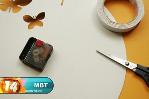Helyezzük be az óraszerkezetet! Ezt akár kétoldalú ragasztószalaggal is megtehetjük!