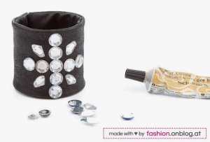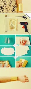 Ez megintcsak nagyon tetszik! Itt egy öntapadós fólia darabbal dobták fel a karkötő alapot!