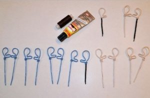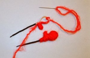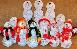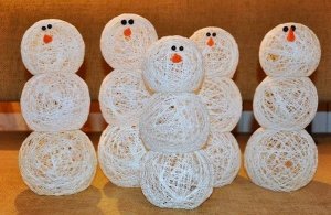 A kezeket pedig egy olyan színű cérnával vagy fonallal, amilyen színű kesztyűt szeretnénk a hóemberünknek!